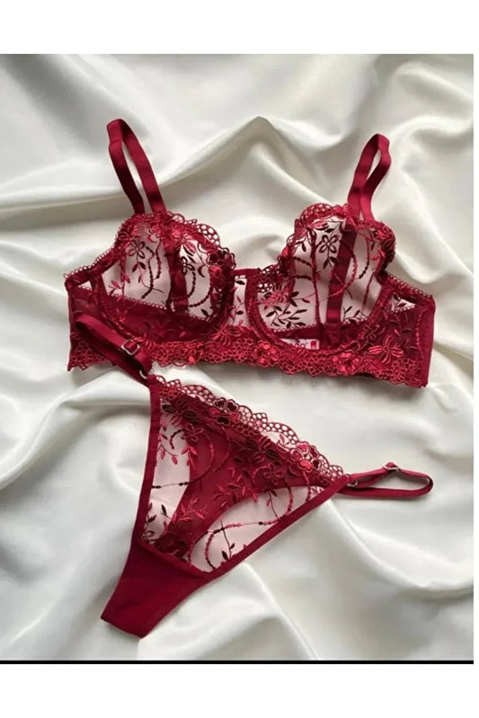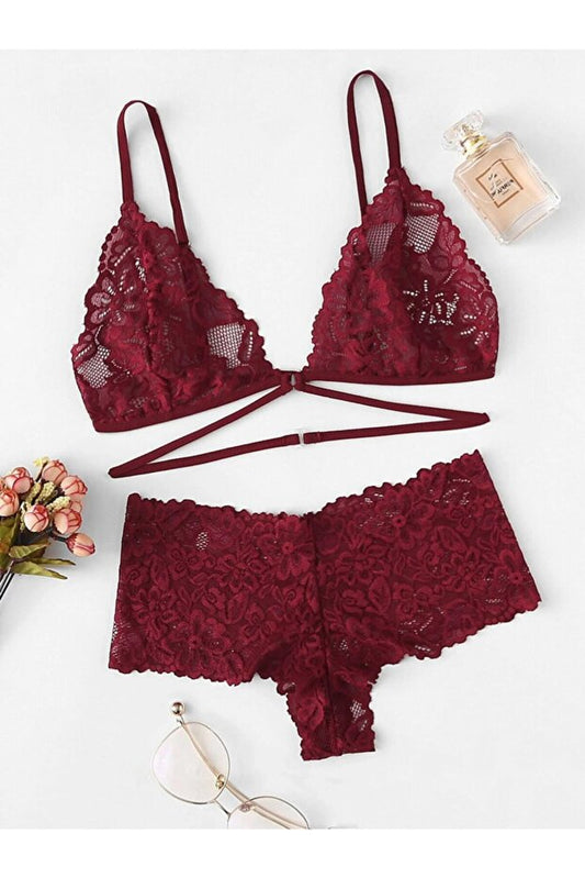 İNDİRİM 33%V&M Dantelli Bordo Erotik Gecelik