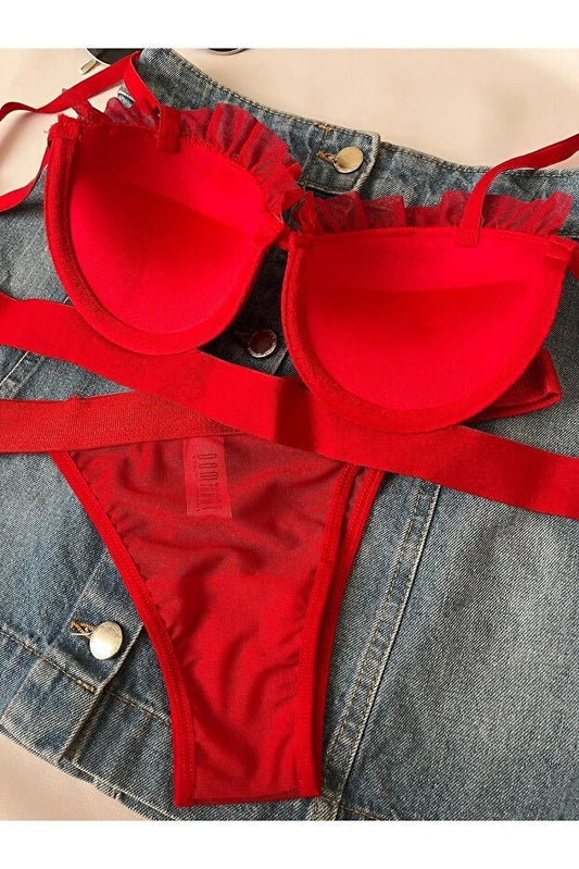 V&M Pembe Kalpli Brodeli Bralet Sütyen&Tanga İç Çamaşır Takımı