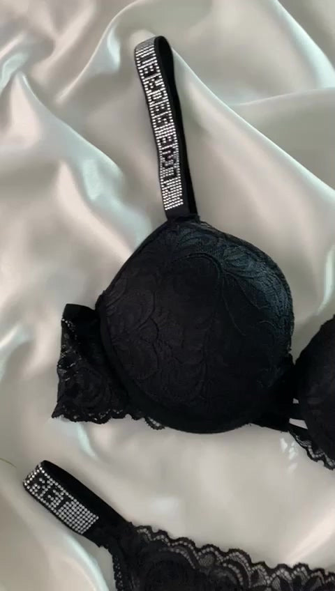 V&M Kadın Siyah Dantelli Taşlı Balenli Dolgulu Iç Çamaşırı Takımı